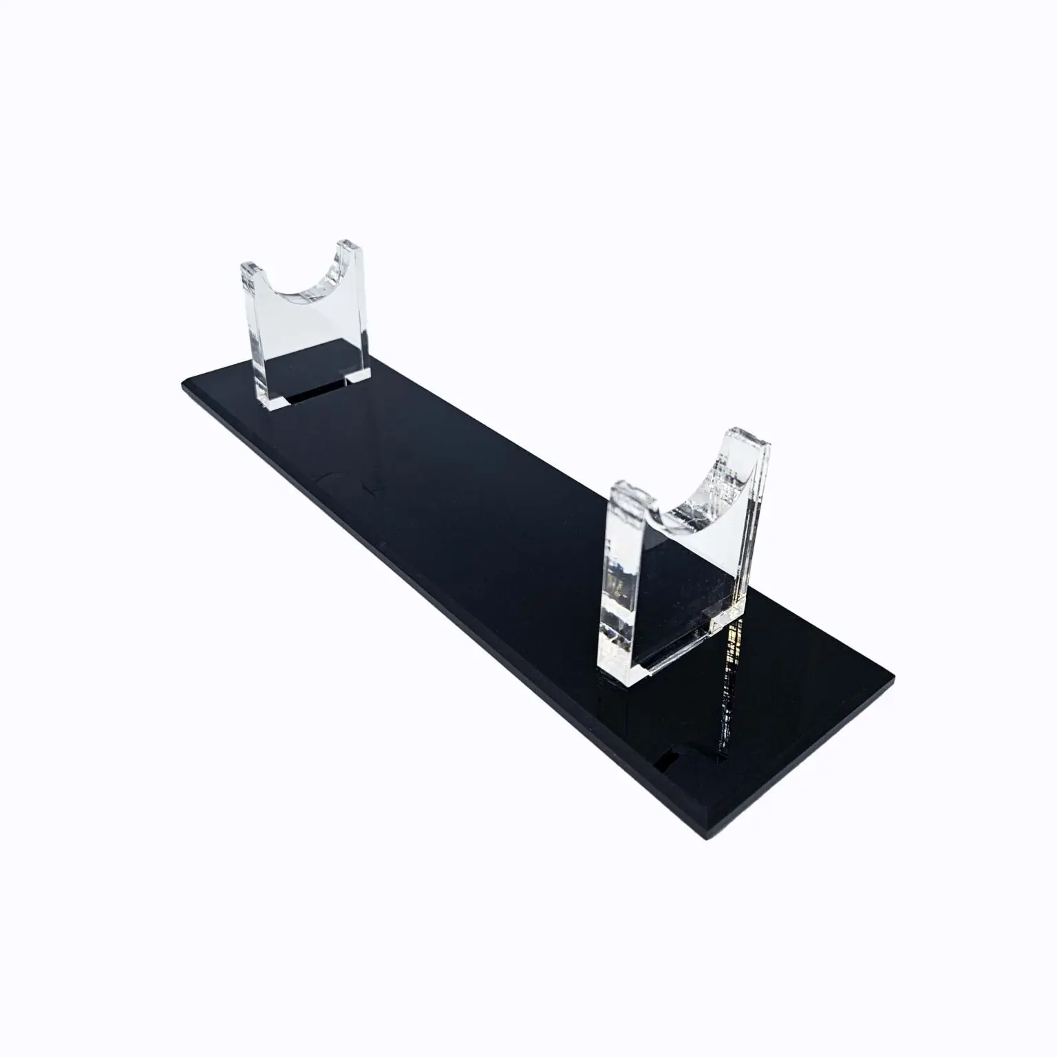 Elegant acrylic glass stand for displaying lightsabers.